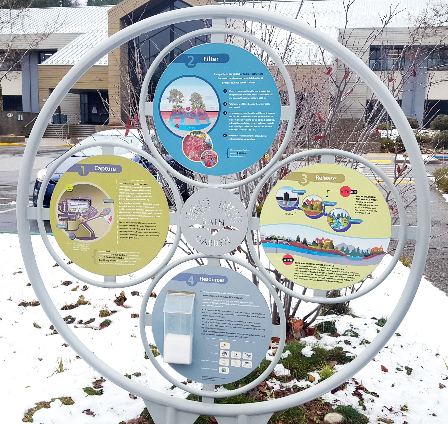 In this local photo scavenger hunt big kids (aka adults) and little kids are called to photograph and share via Facebook or Email, how we deal with water in a sustainable way in our community. In this season’s photo hunt we are focusing on rain & snow melt and how (and why) we capture it.