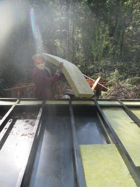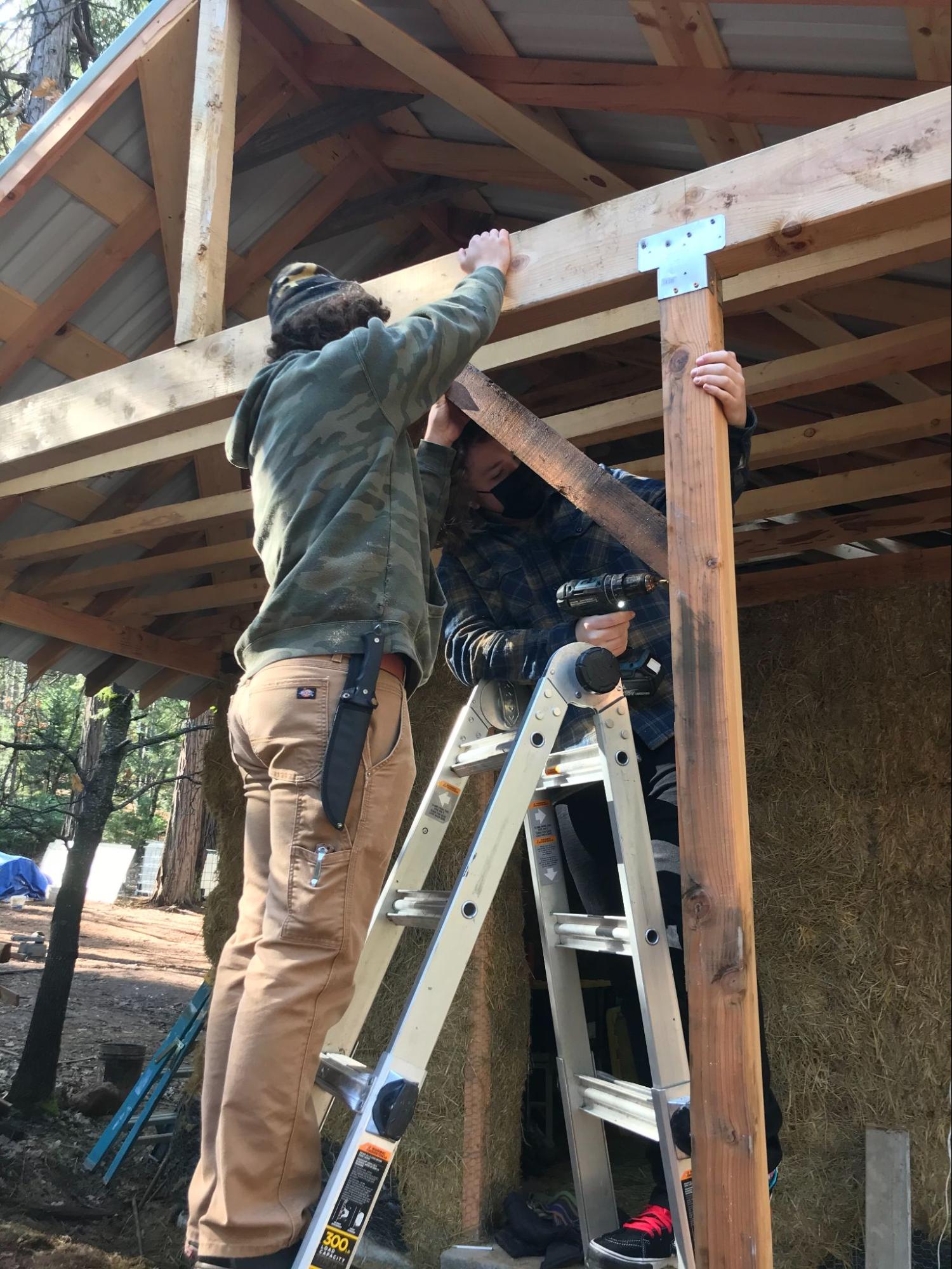 - Gable metal roof using salvaged lumber