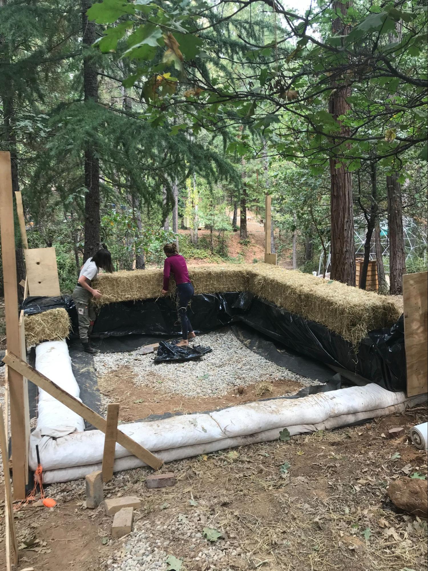 - Rubble trench and earthbag foundation
